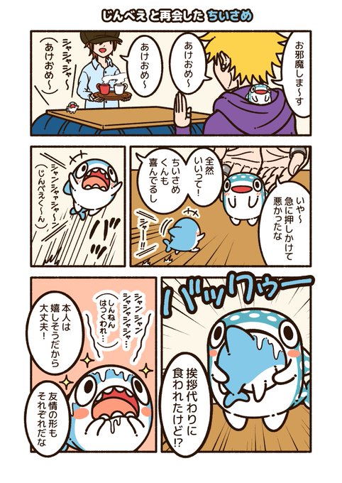 人を喜ばせる事が大好きな じんべえくん! みんなの幸せが自分の幸せ! #ちいさめ #漫画の読めるハッシュタグ
