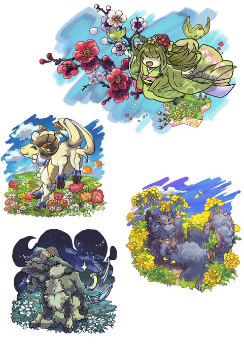 さくらんぼを楽しむ幻獣ちゃん達^ ^ こないだ近くのさくらんぼの木がある公園に行ったらもう1個も無かった…w #幻獣物語2