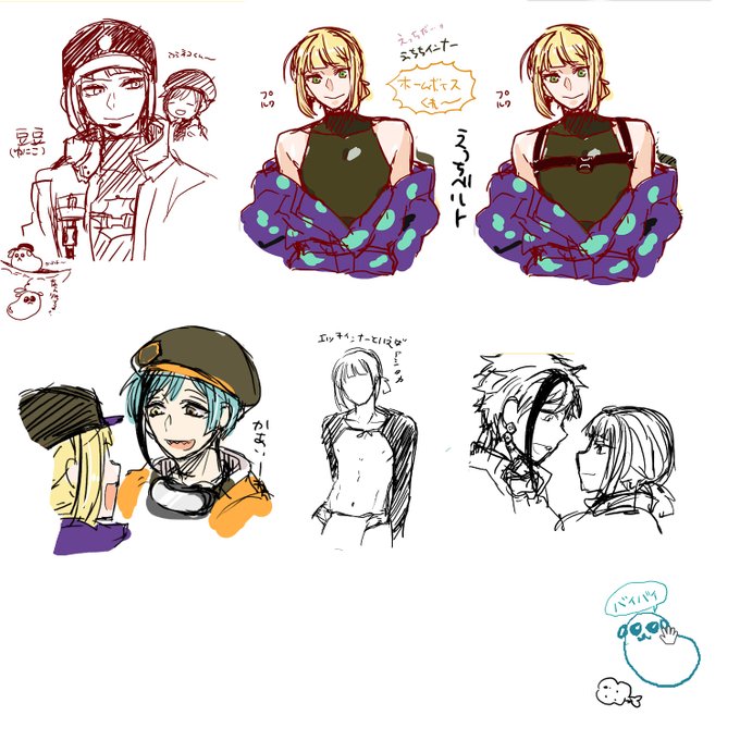 あと大したの描けてないんだけど自分の描いたやつまとめたやつ 豆ルインナーへの妄想がとまりませんね…(アシ〇カのは完全に趣味) あと445さんのまめしば好きすぎて混ぜさせて頂きました☺