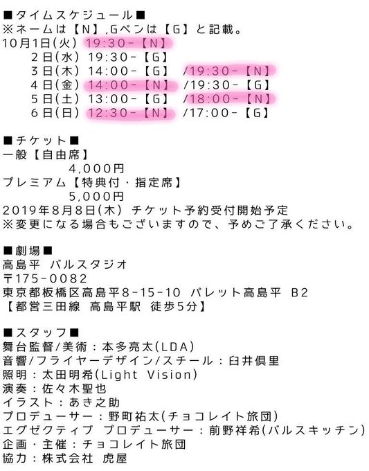チケット🎩※平野は土日のみ出演