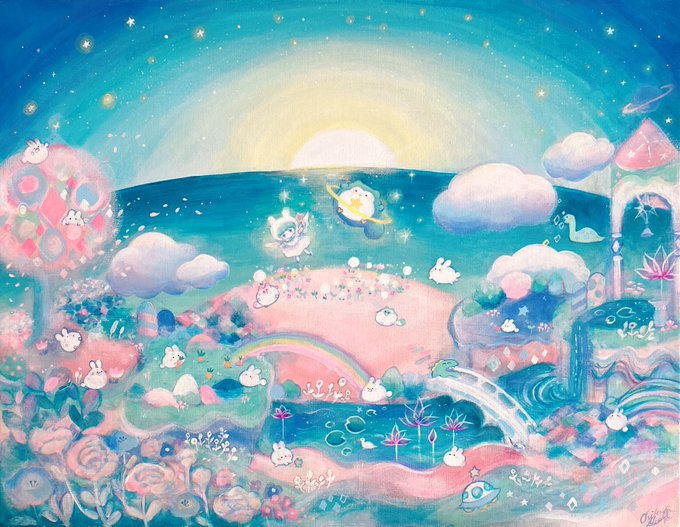 #3月になったのでフォロワーさんに自己紹介しようぜ 幻想的なアクリル画を描いています🪐