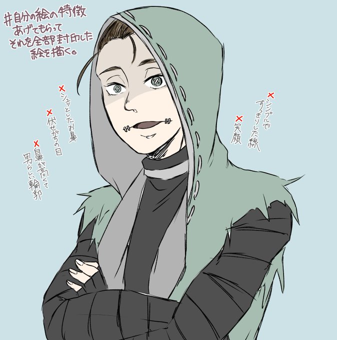 # 自分の絵の特徴あげてもらってそれを全部封印した絵を描く 🤕描きました!面影は残っているかもしれない https://t.co/cAtoRPxU64