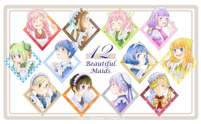 「12人のメイド」 #色鉛筆画 #色鉛筆
