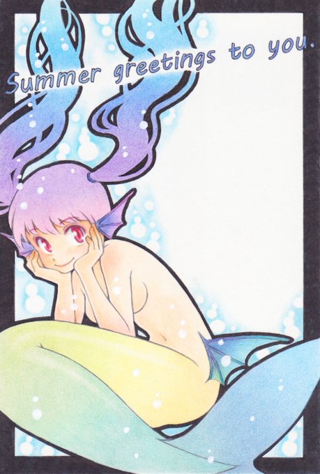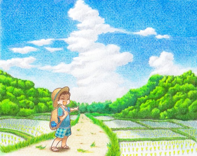 昨年、同じ絵をデジタルと色鉛筆の両方で塗ったら、おもしろいなと思って塗った作品。アナログのほうは友人への暑中見舞いに送った。個人的には色鉛筆のほうが気に入ってる。