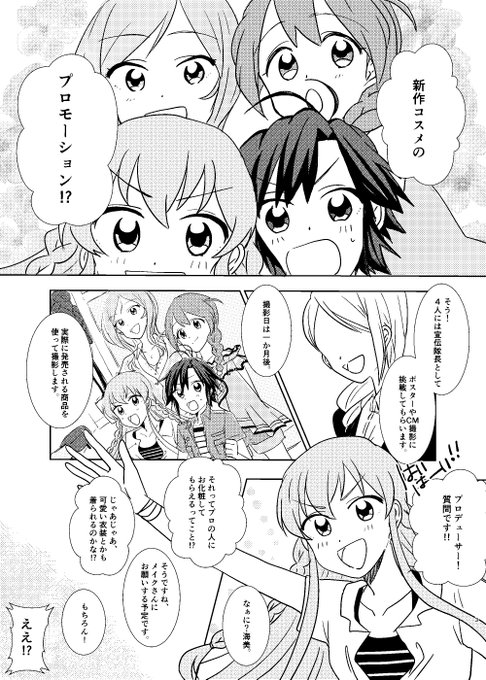 ISFで出す新刊の表紙です~まだ時間あったらデザインいじるかもしれないんですが、自分のお尻たたきにとりあえず…!真ちゃん、海美ちゃん、このみさん、莉緒ねぇでコスメのプロモーションのお仕事するお話です。 #ISF06