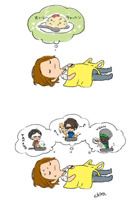 手元を映すなら正面ちょっと上方からのカメラでもいいのに、わざわざみんなの頭や首が写る頭上カメラなのすき 推理パート(雑談)の仲の良さが幸せだし、チャーハンは全部おいしそうでした。ちゃんと寝てね。