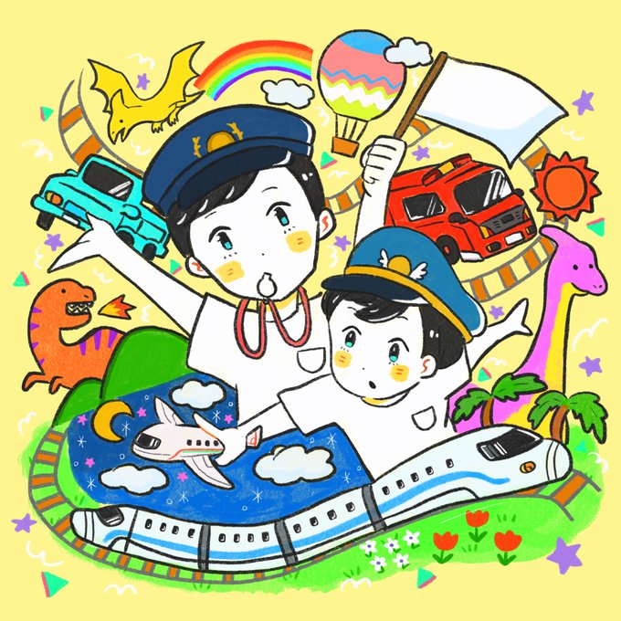 お家に飾るイラストと言うことで息子ちゃんsを描かせていただきました🌈日々兄弟ちゃん達が成長しながらこの絵を見て育ってくれるんやね、なんか泣けちゃう🥺なこ家がこの絵と一緒に毎日平和で健やかでありますように😇 https://t.co/Iha5NxTbW8