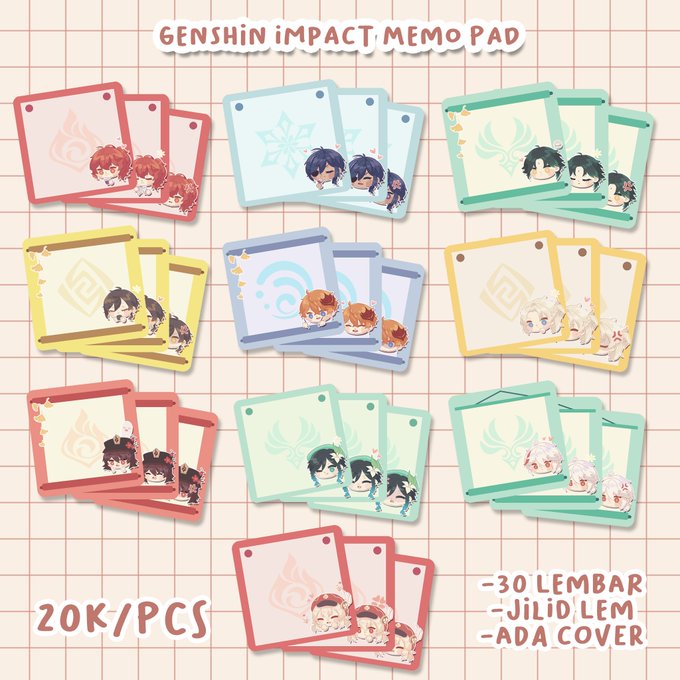 Halo! Aku buka pre-order fanmerch genshin impact  buat CFV 1, ada memo pad, wooden pin, dan stiker, boleh tanya2 dlu yaa, terima kasih~