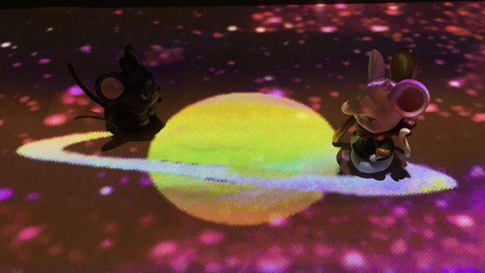 絵本の中のBARで雲と月みたいなノンアルドリンク。綿菓子はドリンクに沈めるとシュワっと消えました。テーブルがプロジェクションマッピングになっていて楽しい。春から冬になったり宇宙になったり、綺麗でした✨
