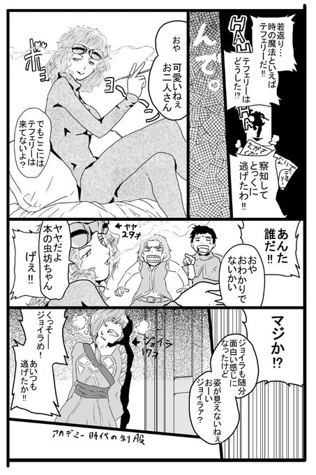 mtg漫画「ビバ!ヤング編」2ページ分。mtgのキャラクターが唐突に若返るお話。