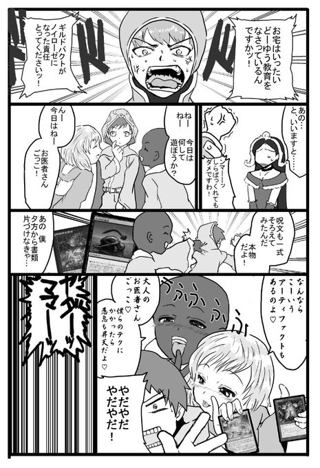 元ネタは「ブラックラグーン」7巻巻末おまけ漫画。ヤヤ(=ヨランダ)描けたので満足。また別の巻のおまけ漫画を元に同じ感じでmtg漫画描きたいですね。