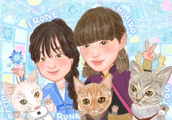 最近、初めて似顔絵をオーダーしました👩👧😺🌙😹☀️😺💓🕊️
