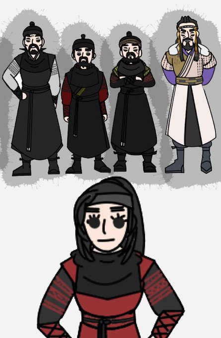 今年の年賀イラストのフルバージョンその1!キル・テミ、ソンミ(六龍が飛ぶ)、ヨンチョル(奇皇后)、ムヒュル(根の深い木) #韓流時代劇 #사극 #육룡이나르샤 #기황후 #뿌리깊은나무 #六龍が飛ぶ #奇皇后 #根の深い木