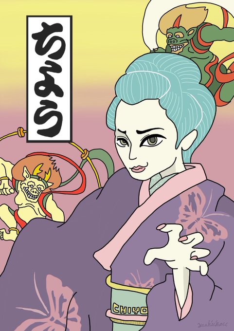 ちよちゃんイラスト完成🎉 最近は、和にハマっていて 風神雷神も描いてもらった。 ゆっくんいつも、ありがとうございます😚 ばちカッコい〜🫣 パパに着付け教えてもらお🧌 #イラスト #和風イラスト