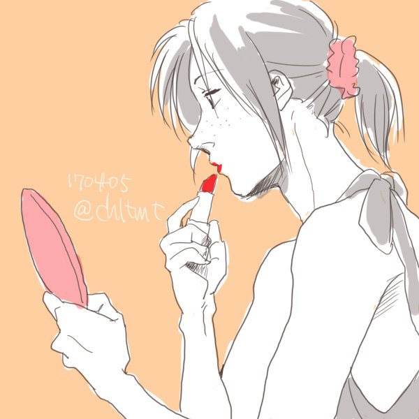 あれ?おっかしいなあ(´・ω・`) 何でついっぷるに上がっちゃうんだろ。 お題箱の「贈られた口紅をこっそりつけてみるユミル」いただきました(*´ω`*) ありがとうございました。喜んでいただけるといいのですが。