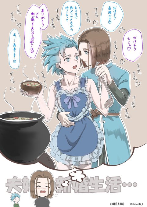 #主カミュ版深夜の真剣お絵かき60分一本勝負 いつも遅刻&時間オーバーですいません💦開催ありがとうございます! お題「夫婦」 新婚夫婦のバカップルさ溢れる妄想です