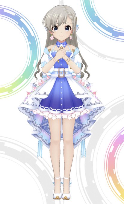 形はドレスっぽくもあるしふわふわなのにジャケット羽織ってたりベルト巻いたりしてるのめちゃくちゃ良いし、はーもにーにスタイル寄せてるよね……??ハーモニーの衣装をドレスにして豪華にした感じがしてあまりにかわいい ハーフアップも世界を救える