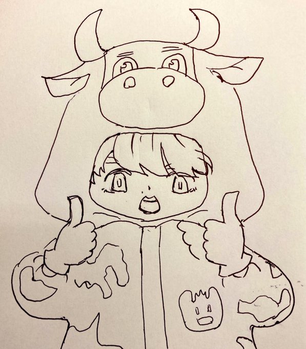 何回見ても牛がかわいすぎるのよ #肉チョモ美術館 #Geroイラスト祭り #めいちゃん美術館