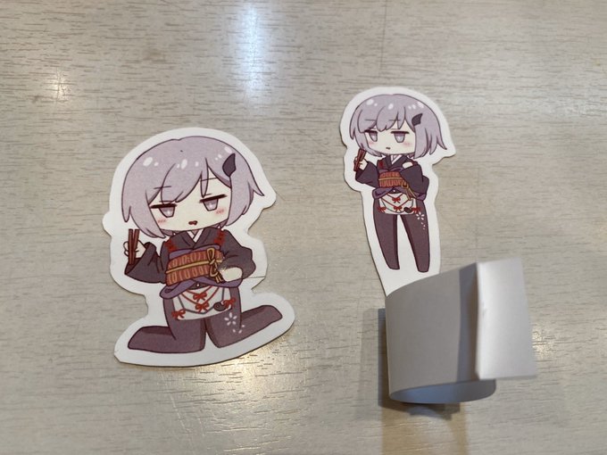 2枚目が切り取った後の見本で、立ち絵は切れ込み線を入れると自立するようになります。
