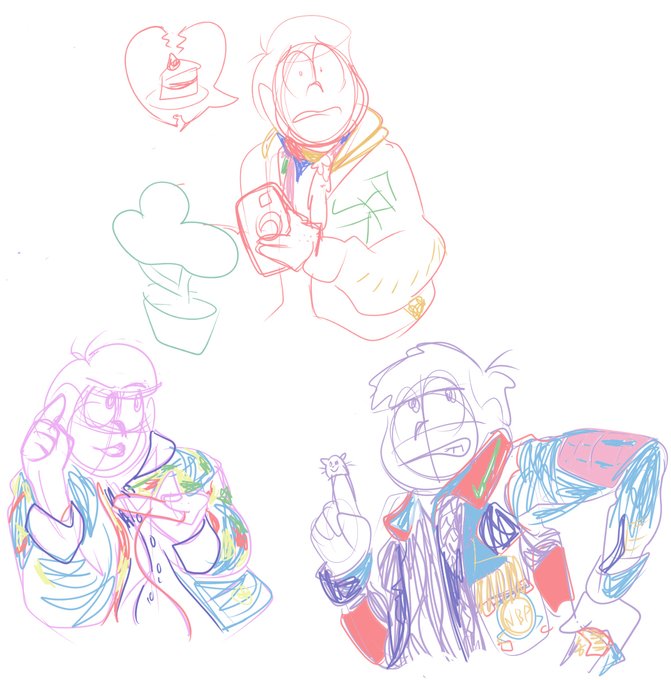 quick expression/pose/clothing studies of the matsus based on their live-action actors