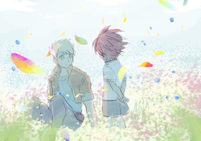 表紙が出来たので具体的に言うとTOA本(A5・フルカラー100P)が1800、TOV本(A5・カラーモノクロ混在)が300になります。表紙こんな感じ。よろしくお願いします。 TOAの方はめちゃめちゃ新規描いたけどTOVは描いてないです。Twitterログです。ヨロシクネ