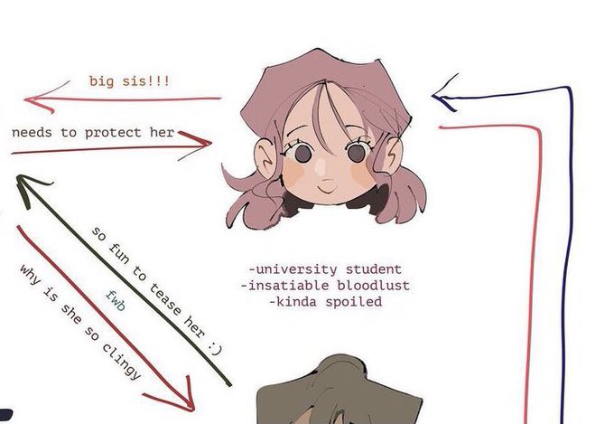 made no-eyebrows guy a friend!!!!!! they’re exes but they’re still very close💞 she’s a body piercer and she did all his piercings :D I don’t have any ideas for a color scheme yet … lol