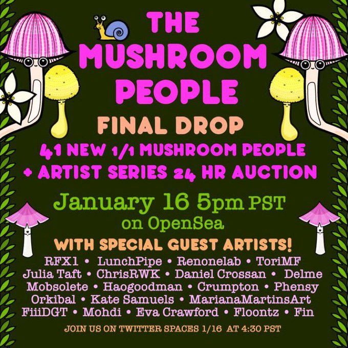 I’m honored to be involved in @miss_olive47 Mushroom People project. 1/16 on @opensea