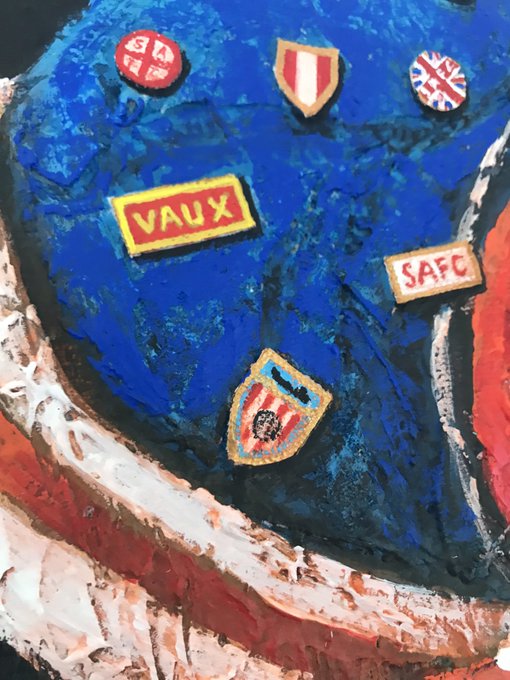 This ‘bobble hat’ painting is inspired by Sunderland’s iconic Hummel kit that they wore in the victory over their local rivals in the playoffs in 1990 at St James Park.