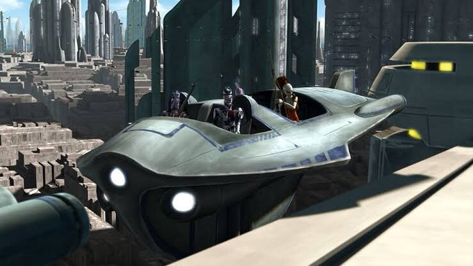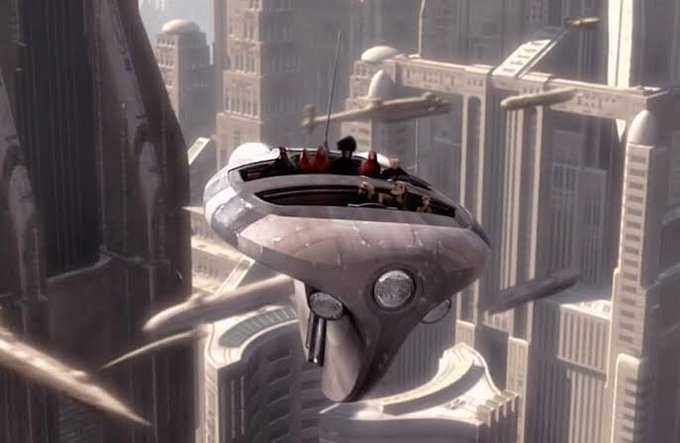 ナブーの女王は大型のタクシーに乗りましたが、マンダロアの女公爵一行はそれより一回り小さいタクシーに乗っていました。