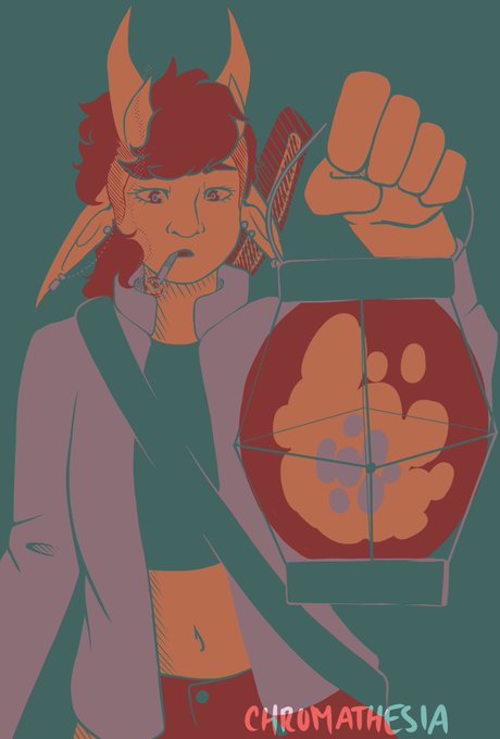day 3- isolde terien, the tiefling artificer who i've made and remade for three different campaigns. this is her post-apocalyptic look, complete with a lantern and her rifle. not pictured: gala, her mechanical pangolin :)