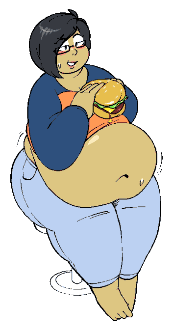 trade with @KyutaFCA of their sona! I think she's surprising even herself with how much she's packed away already... one more burger wouldn't hurt, right?