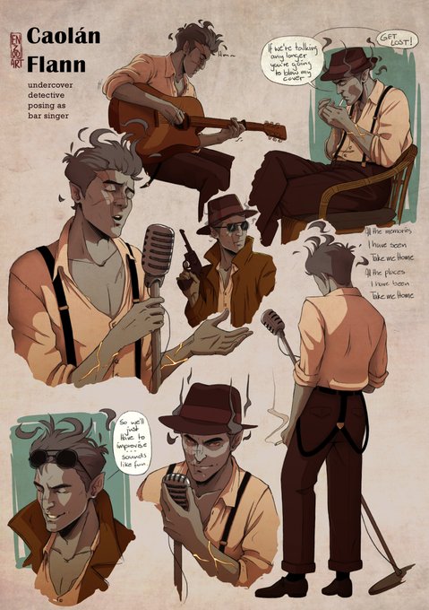 little sketch dump of my genasi boy caolán in a detective au
