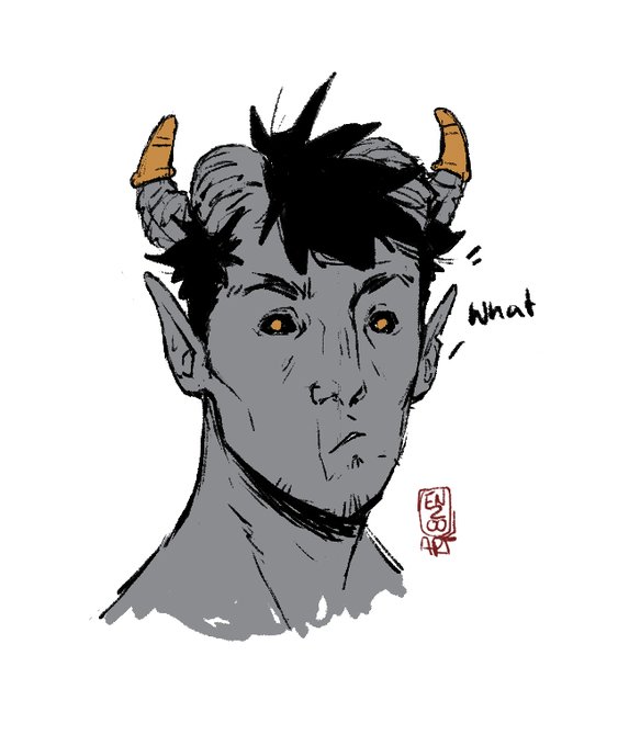 @ArtMeggles Banti my tiefling rogue. He's a full-fledged disaster boy, but a loveable one. He had quite the rocky start in life and still doesn't know a lot about his past, but he's happy with his new found family and would do everything for them.