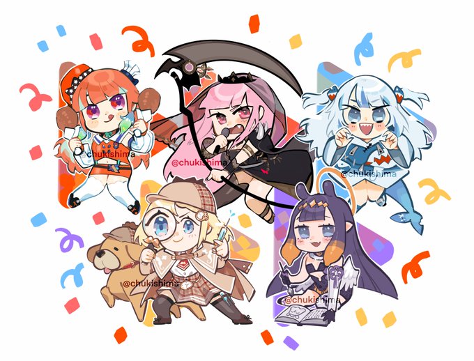 no new art to post rn so i will share the #holoMyth designs i did for charms that i sold at holmat last year! 🍗💀🦈🔎🦑