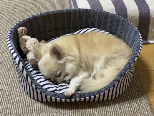 おはようでしゅ(ᐡーㅿーᐡ).。oO ネムネム #犬好きさんと繋がりたい #くぅちゃん #今週もヨロシクね #シニア犬 #チワワ https://t.co/WEJXbU4sns