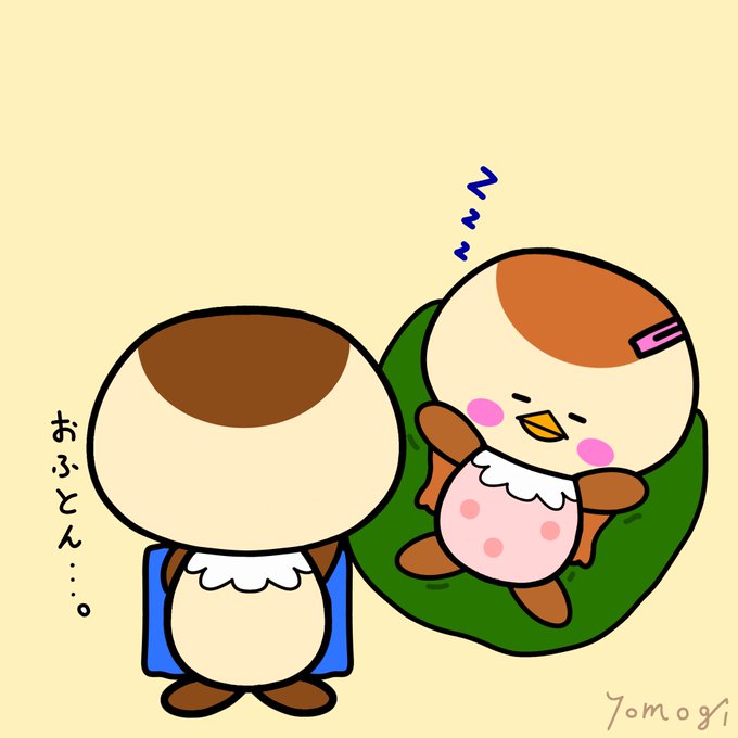 そこで寝たらおねつでちゃうよ🐤 #ちゅんた #おふとんをかけてあげる