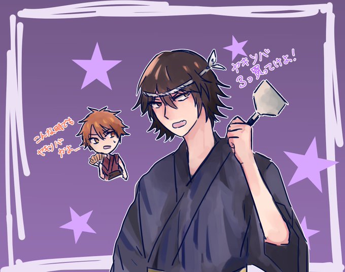 一応柴君前提 和装というかSDキャラ缶バッジ浴衣バージョンのやつ。あの絵めっちゃ可愛くて好き。 焼きそば全買いさせてください!! 彼氏はさっさと切り上げてもらって夏祭りデートに行きたい