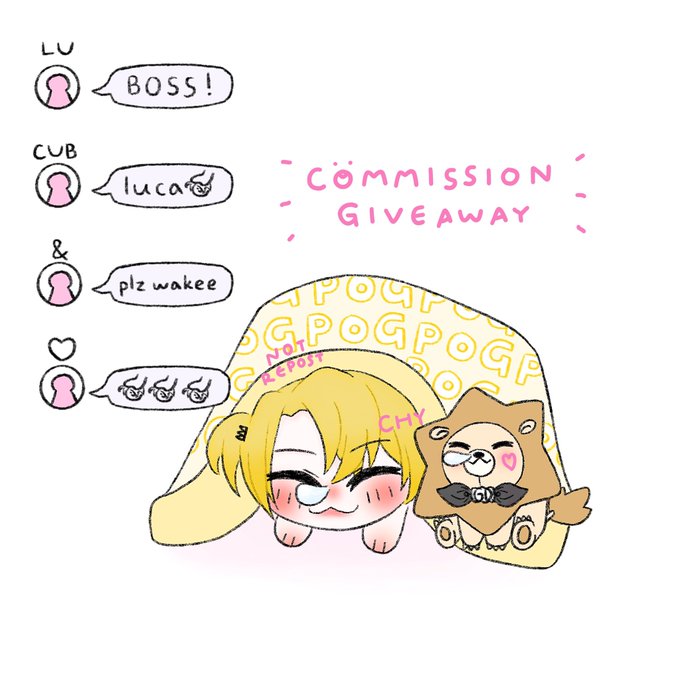 เนื่องจากวันนี้มีความสุขมากแล้วก็พี่ชูน่ารักสุดยอด เค้าแจกคอมมิชชั่นฟรี 1 คนค่ะแค่รีทวิตแล้วก็ไม่นำไปใช้เชิงพาณิชย์ก็พอ🥺 มีสเกลจิบิกับครึ่งตัวนะคะ ลายเส้นครึ่งตัวยังไม่คงที่แต่ถ้าจะเอาเดี๋ยวส่งตัวอย่างให้เลือกอีกทีค่ะ🤏🏻