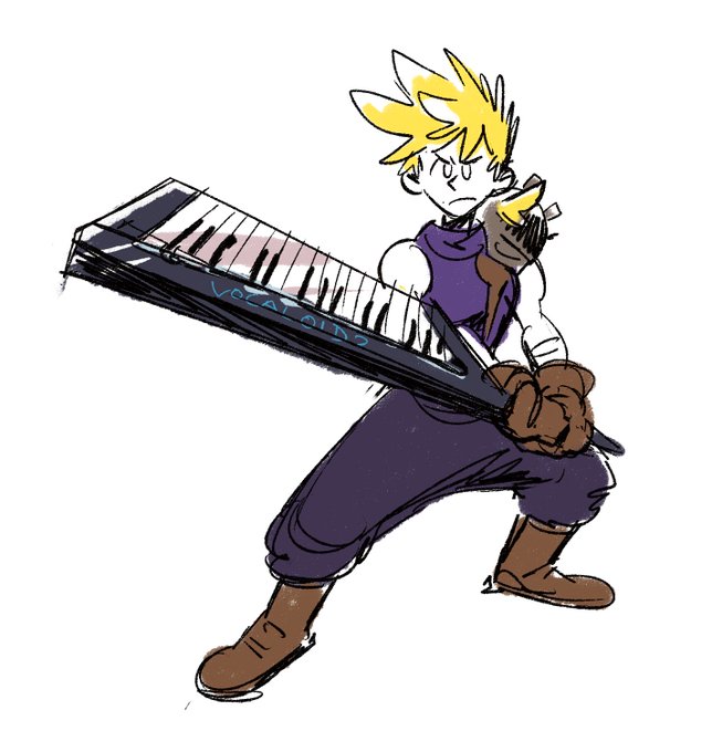 rin + len as cloud and aerith 🙏🙏 and his buster keytar