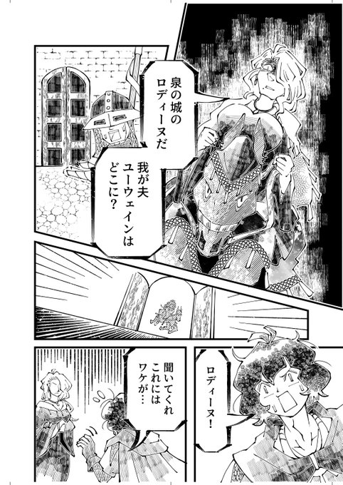 近日中に自作漫画を公開するよ! タイトル:獅子の騎士と泉の女伯爵 アーサー王物語の古典テキストを元ネタにした(時折現代日本風にアレンジしている)冒険活劇です ライオンさんも登場するので、人外推しの皆さんにも楽しんでいただけると思います🦁 #幻想円卓草子
