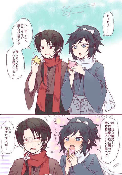 おみやげ続き(やすかね) 安定くん、和泉守本人の前ではキレ散らかすことあっても普段はデレたりしてるとかわいいね😊