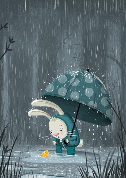 Tim Budgen's Bunny spots a glimpse of gold on a rainy day http://t.co/8kZrDmKAIa #kidlitart #illustration