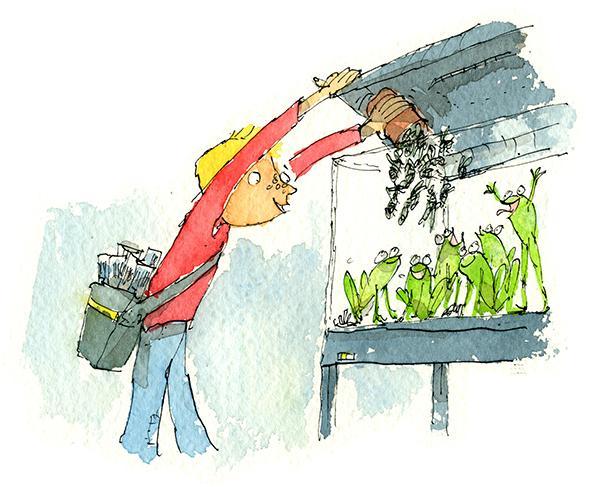 Rupert VanWyk's character is feeding the frogs! http://t.co/c3s4QICE97 #kidlitart #illustration