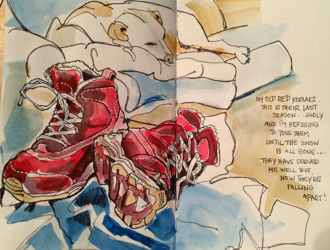 #DailySketch - *sad* These old red #Kodiaks have seen their last #Ottawa winter #artjournal #urbansketcher