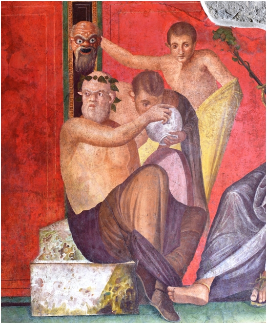Here we have another example of the presence of two layers, corresponding to the Sacrifice of Iphigenia (House of the Tragic Poet). The close-up pictures show the thickness of the “secco” layer and the painter’s brushstrokes.