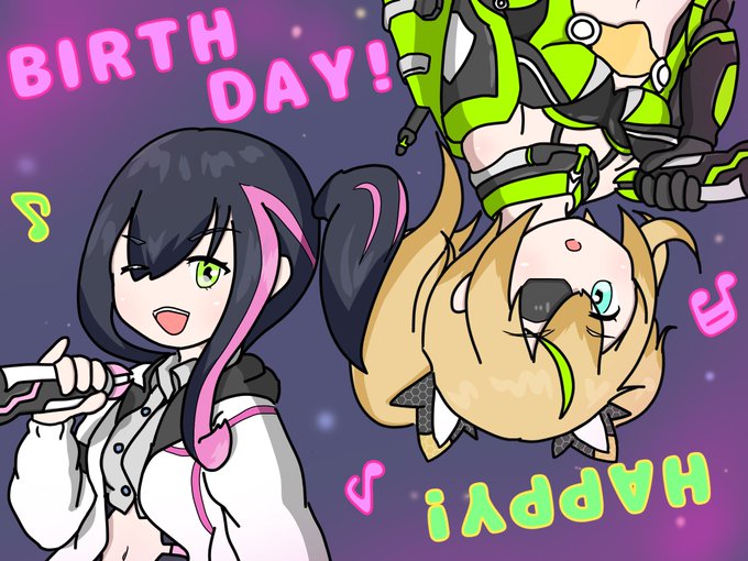 遅くなっちゃったけど…おもちさんハピバ!🎉🎉🎉 PSO2esのビターソングちゃんとおもちさん! ちょうど黒緑カラーのビターソング迷彩が来てたので🎤🖤💚🎤🤍💖