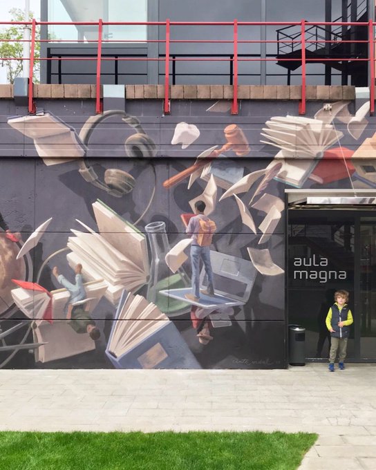 Mural for the entrance of the Main Hall of the International Iniversity of Catalonia(@uicbarcelona). The challenge was to represent all the disciplines taught by the university and the divesrity of its students. Initiative by @impars_bcn in collaboration with @architectureuic.