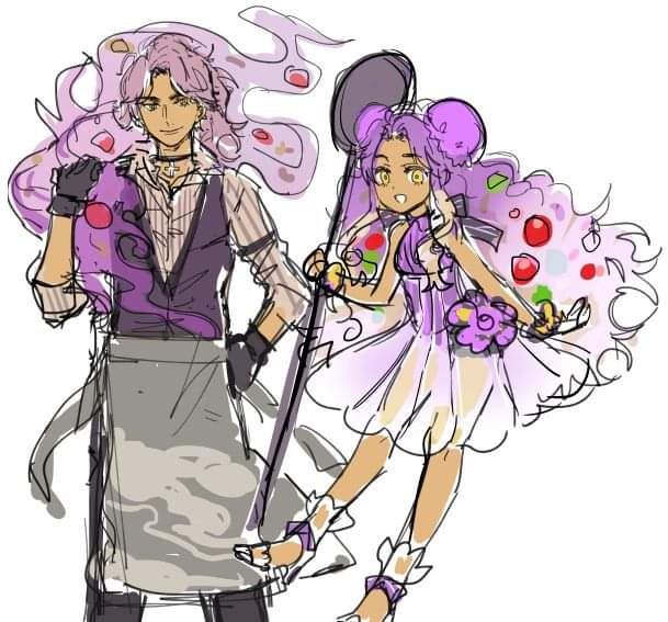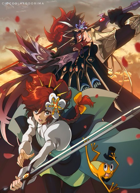 I drew Crisbell from the upcoming game, Cris Tales, with my fan character.