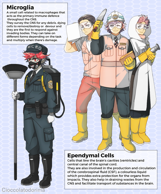 Neuroglia & Neuron gijinka inspired by Hataraku Saibou