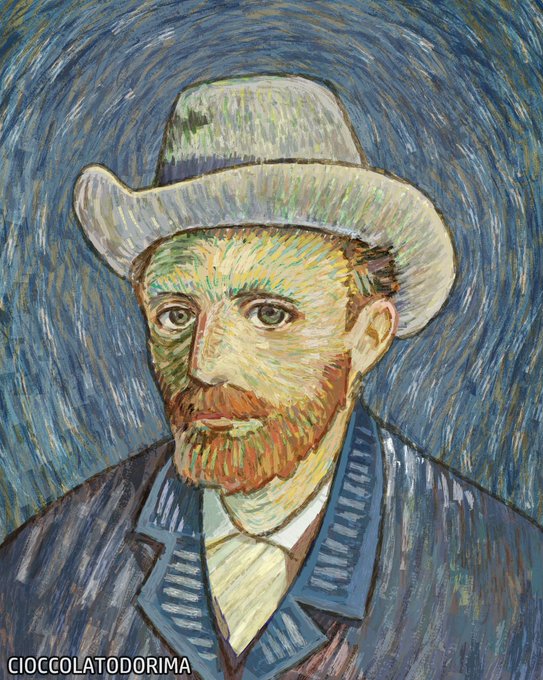 I tried to draw anime-style Vincent Van Gogh and coloured it in his painting style.